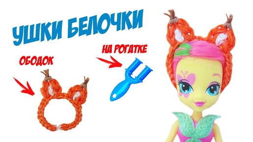 ОБОДОК УШКИ БЕЛОЧКИ для КУКЛЫ из резинок на рогатке. Миниатюра для кукол