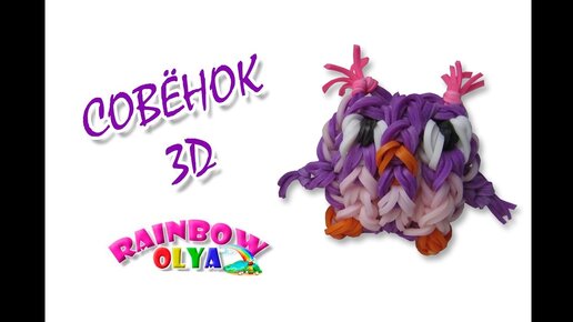 3D СОВА из резинок на крючке без станка | Owl Rainbow Loom hook only