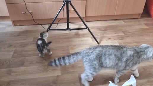 Котята боятся старшую сестру Снежинку Только котенок Лола ничего не боится