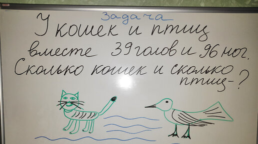 Эту детскую задачку решит не каждый взрослый: "У кошек и птиц вместе 39 голов и 96 ног". Сколько кошек и сколько птиц