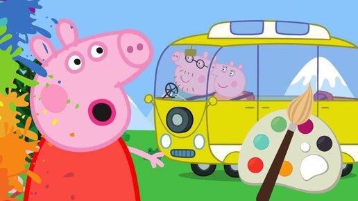 Раскраска - Свинка Пеппа и ее семья едут на автобусе