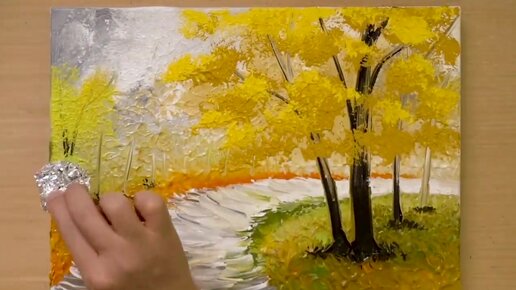 Как нарисовать парочку осенью|Жёлтая картина Акрилом