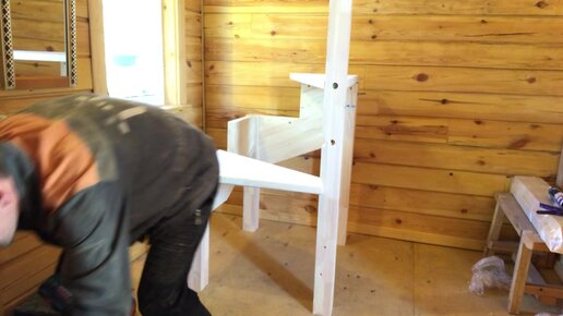 Установка деревянной лестницы с забежными ступенями на 90 градусов.