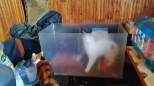 Кот в аквариуме. Залез сам. Вылез сам. Понравилось