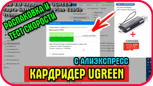 Кардридер UGREEN с Алиэкспресс. Замер скорости