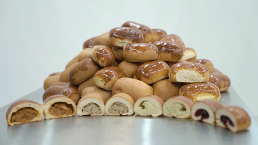 Как работает автоматическая линия для производства дрожжевых и слоёных изделий с начинкой? Делаем пирожки!