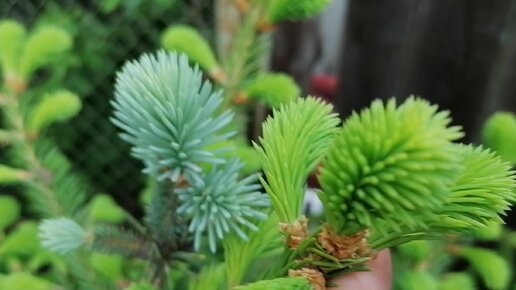 Моя привитая в прошлом году веточка голубой ели на зелёную прижилась и выпустила молодые иголочки. 23.05.2021
