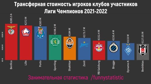 Трансферная стоимость клубов Лиги Чемпионов 2021-2022