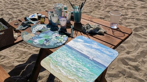 Для меня провели индивидуальный мастер-класс. Я рисовала море и оно получилось, как живое
