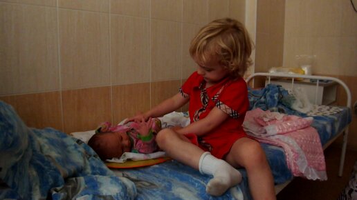 Знакомство с младшей сестрой на второй день после её появления на свет