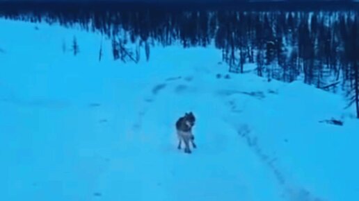 Очень странное поведение одинокого дикого волка. Вахтовики побоялись выходить из камаза