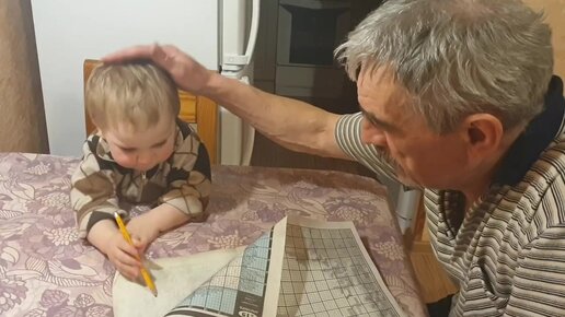 Дед и внук/Маленький помощник/Разгадывают кроссворд/Полная идиллия
