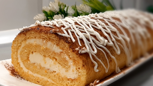 Рецепт очень вкусного бисквитного рулета с тыквой и нежным кремом! Без пропитки и лишней возни!