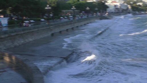 Набережная Ялты. Шторм. Брызги создают картину, от которой трудно оторваться. Стихия бушует