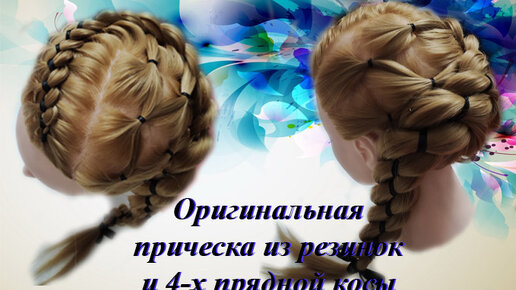 Оригинальная прическа из резинок и 4-прядной косы! Пошагово!
