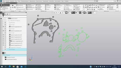 Компас-3D v.20.0.0. Сборка ДВС, часть 11.3. Блок двигателя, передний торец. Начало.