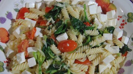 Паста со сливочным соусом из порея и шпината