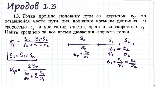 Средняя скорость точки при движении с разными скоростями: Иродов 1.3