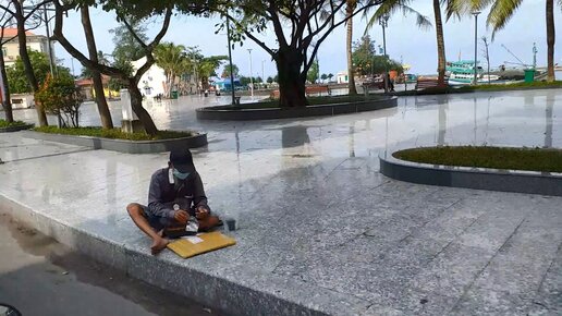 Зеркальная набережная, у дороги продают лотерейные билеты