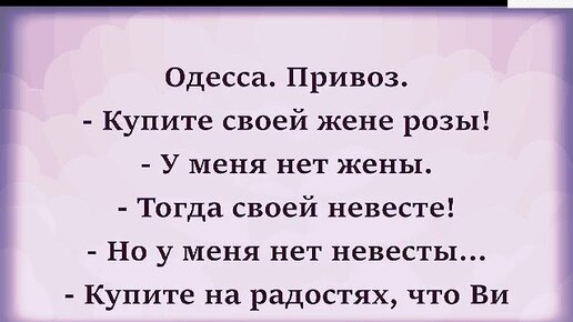 Одесса. Привоз. -Купите своей жене розы! -У меня нет жены. -Тогда своей невесте! -Но у меня нет невесты.....Анекдоты