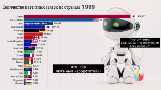 В какой стране больше всего было запатентовано изобретений по годам (1981-2017)