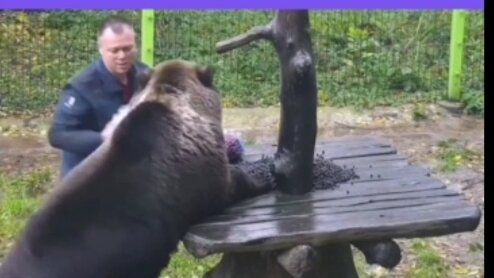 Такая любовь 😍 Человеком и Медведьим... Медведь каждый раз его ждёт... Он приходит и обнимает и поесть даёт ему... Так мило,🤗