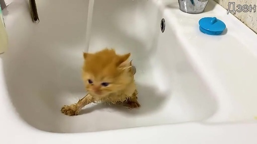 Первая ванна для брошенного котенка. Слезы текут рекой