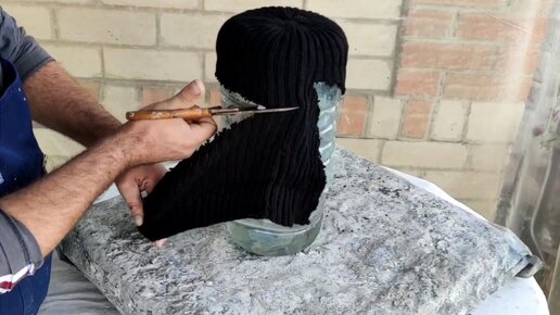Из Старой вязанной Шапки и цемента сделал Оригинальную Поделку для Клумбы, и это не цветочный Горшок.