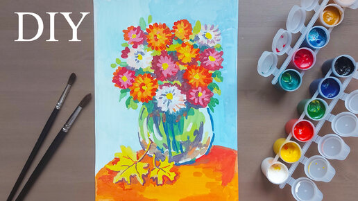 Как НАРИСОВАТЬ ОСЕНЬ, ОСЕННИЙ БУКЕТ, ЦВЕТЫ для МАМЫ