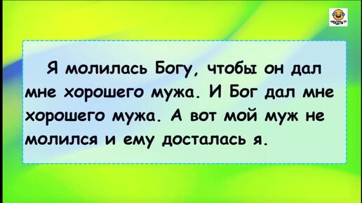 Женщина молилась, чтобы он дал ей хорошего мужа. Он его дал. А вот муж не молился, ему досталась она Анекдот