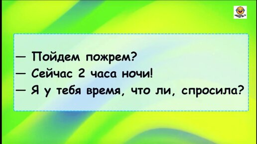 Женщина говорит: - Пойдем пожрем? - Сейчас 2 часа ночи! - Я у тебя время спросила что ли? Анекдот