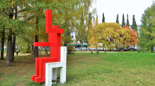 Стойкий Красный Человечек. Арт-объект в городском сквере Перми.