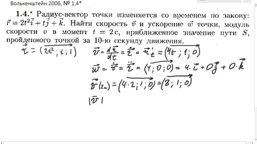 Найти скорость и ускорение по зависимости радиус-вектора от времени: Волькенштейн 1.4