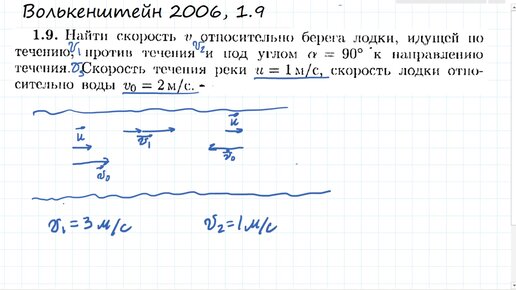 Найти скорость лодки относительно берега: Волькенштейн 1.9
