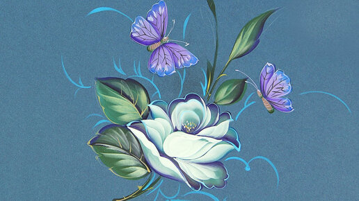 Рисуем розу и бабочек акриловыми красками