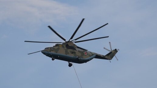 Посадка вертолёта Ми-26 с водосливным устройством ВСУ-15 и радиообменом в конце.