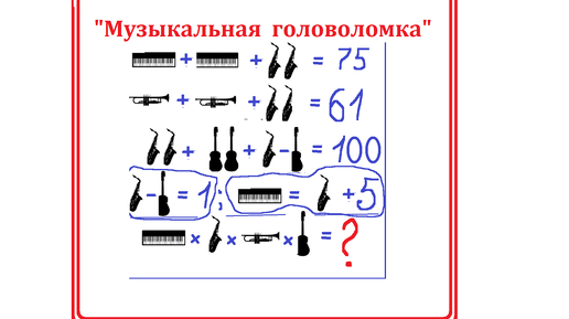 Головоломка с музыкальными инструментами: узнать, чему равно их произведение. Найдите ответ