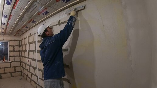 Штукатурка газобетона по сетки без маяков. Доступно и легко. Дом для своей семьи. Серия 90