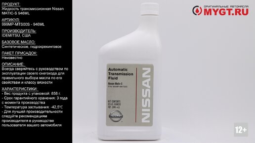 Жидкость трансмиссионная Nissan MATIC-S 946ML #ANTON_MYGT