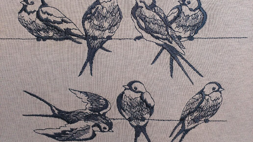 Процесс вышивания ласточек на проводах под музыку Ludovico Einaudi