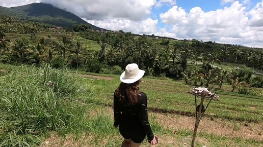 Прогулялась по рисовым террасам на острове Бали и встретила буйвола который мило кушает траву