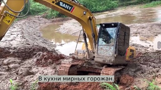 «Однорукий» экскаватор завяз в пруду. Сможет ли он выбраться