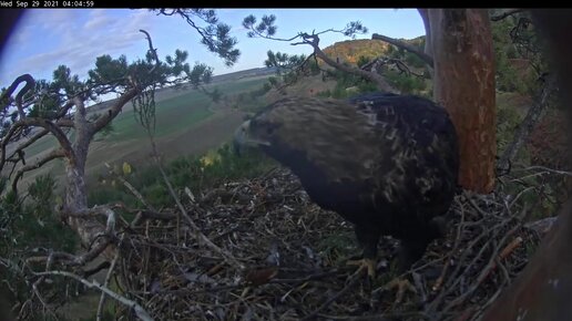 29.09.2021 7:04 Алтын с зеленой веткой. Черный дятел, с криком летает вокруг гнезда