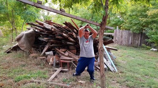 Рубал дрова так , что штаны слетали . Поднял жену на руки .