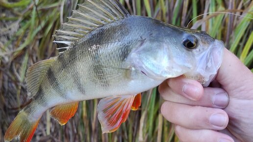 Огромный окунь на речке / Жор окуня на джиг / Рыбалка осенью на хищника