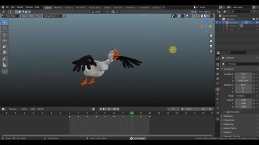 BLENDER 2.91 Борис (Boris)-гусь, первый полет анимация