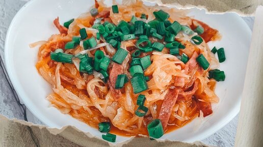 ТУШЕНАЯ КАПУСТА «БАРХАТНАЯ». Сытный обед с копченой ноткой.