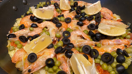 Как муж удивил ужином, приготовив национальное блюдо Испании: паэлья с креветками.