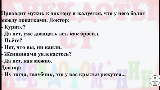 Приходит мужик к доктору и жалуется, что у него болит между лопатками. Доктор...Анекдоты