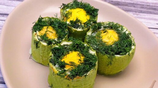 Эффектный завтрак из минимума продуктов! Яичница в кабачках.
